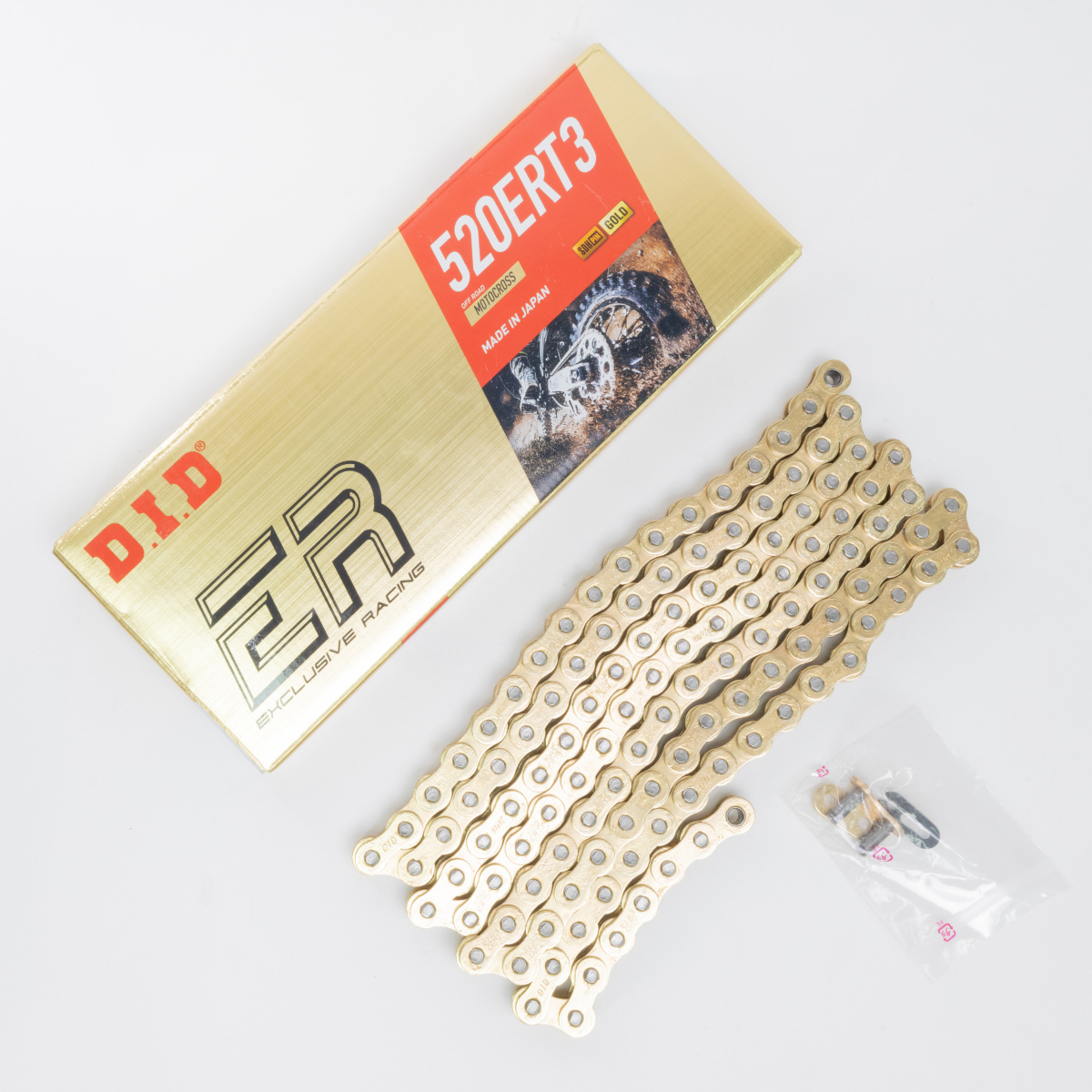 Лучшая цепь для профессионального мотокросса. Цепь ERT3 используется ведущими командами в мире. С новейшими технологиями и разработанными для экстремальных условий гонок, D.I.D. ERT3 имеет на 25% большую анти-ударную характеристику и на 5% более высокую прочность на растяжение по сравнению с цепью предыдущего поколения без изменения веса цепи. Это означает, что ERT3 является более прочной без компромиссов, сохраняя при этом вращательную массу до минимума. Используется и тестируется профессиональными командами мотокросса, такими как Factory KTM, Honda, Yamaha, Kawasaki и Suzuki, D.I.D. ERT3 - это следующий уровень производительности цепи. D.I.D. ERT3 имеет обработку SDH, которая создает твердый слой карбида хрома на поверхности штифта, в то время как внутренний сердечник поддерживается мягким, чтобы поглощать экстремальные ударные нагрузки. D.I.D. ERT3 использует технологию твердых втулок